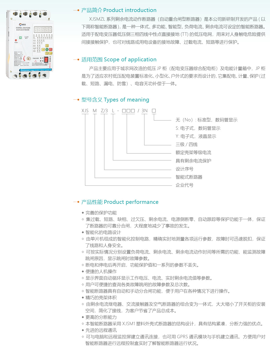 XJSMZL系列剩余電流動(dòng)作斷路器