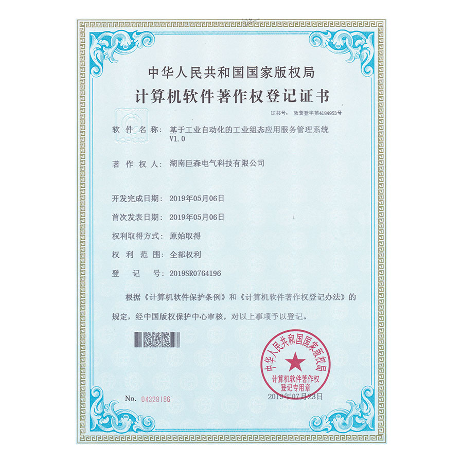 計(jì)算機(jī)軟件著作權(quán)登記證書-基于工業(yè)自動(dòng)化的工業(yè)組態(tài)應(yīng)用管理服務(wù)系統(tǒng)V1.0